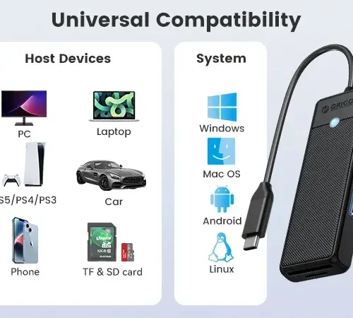 Orico хъб USB3.1 HUB Type-C – 3 x USB3.0, SD, TF – PAPW3AT-C3-015-BK