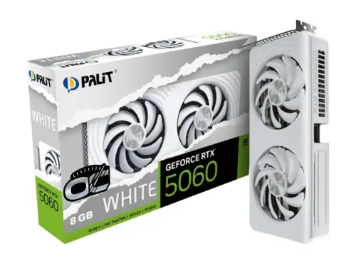 The Palit GeForce RTX 5060 White offers classic cooling performance in a clean, modern white design. Dual 95mm fans deliver high cooling performance and low noise levels, all in a compact, 2-slot chassis perfect for small form factors. A durable white backplate enhances both design and style.
