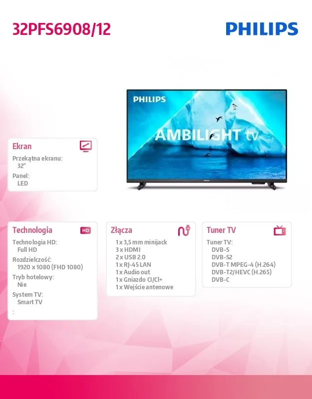 Looking for a TV that fits into your room? The virtually bezel-less screen of this TV with Ambilight technology always looks good, and the slim matte-black legs make the screen look as if it is floating. In addition, the Ambilight function can be used as ambient lighting with a WOW effect!