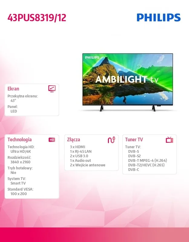 Philips TV LED 43 inches 43PUS8319/12