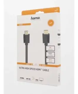 Кабел HAMA 205243, HDMI мъжко – HDMI мъжко, 8K, 48GB/s, Ethernet , 3 м, Позл. конектори, Черен