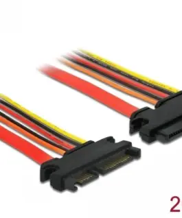 Удължителен кабел SATA III DeLock, SATA 6 Gb/s 22 pin мъжко – SATA 22 pin женско, (3.3 V + 5 V + 12 V), 20 cm