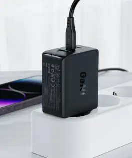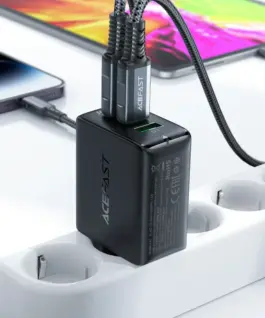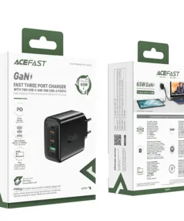 Acefast Универсално зарядно за стена Charger Wall GaN PD65W – A41 – USB-C x 2, USB-A x 1, Black