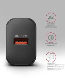 The AXAGON ACU-QC18 USB wallcharger is designed for charging mobile devices. With 18W of maximum power, the charger charges phones, Таблетs and other mobile devices at the highest possible speed. The adapter offers a standard USB-A connector.