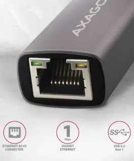 The external network card AXAGON ADE-TRC easily converts USB-C 3.2 Gen 1 port to Gigabit Ethernet port.