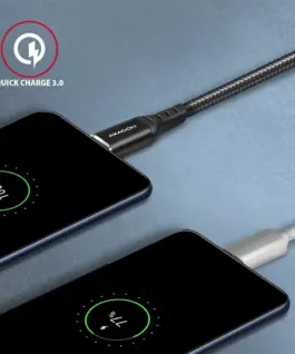 Durable data and power cable with extended service life is equipped with metal terminals, connectors with a nickel-plated surface and gold-plated contacts. Cable conductors are made of tin-plated oxygen free copper. High-quality cable insulation, made of flexible TPE, guarantees maximum durability and also maintains sufficient flexibility. The final strength of the cable is provided by the nylon braid. The bonus is a practical strip for easy packing of the cable.