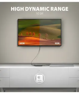 Supports HDR10, HDR10+ (High Dynamic Range, 10-bit support) realistic reproduction of bright and dark details.