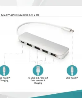 4-port USB 3.0 SuperSpeed HUB with Тип C PD active, aluminum