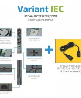 Thanks to the power strips fitted to the IEC 320 C14 power socket, the user can change the power cord to the length it requires. The manufacturer offers a detachable 2 m long cable as standard (plug with earthed 7/7 – IEC C320 C13).