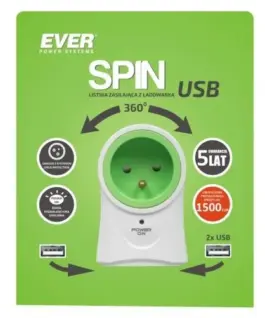Power strip with EVER SPIN USB charger thanks to a 2-port USB charger allows you to charge 2 mobile devices (Таблетs, smartphones, smartwatches) at the same time. The 3600 slot / plug rotation functionality also offers high user comfort.