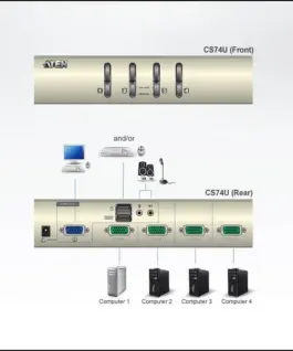 KVMP превключвател, ATEN CS74U, 4-портов