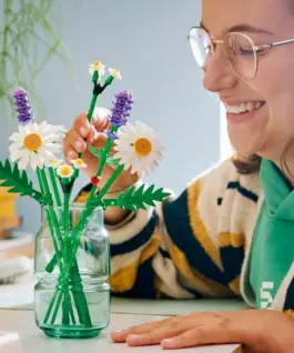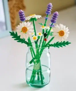 This small LEGO bouquet, perfectly blending joy and calm, features highly realistic flowers and an adorable ladybug on one of the lavender stems – a delightful detail that is sure to enchant young builders. Once built, children can proudly display their LEGO flower bouquet as a stylish decoration for a bedroom or desk that will never wilt and requires no watering.