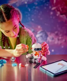 LEGO fans build and rebuild 3 different action-packed space playsets with the same bricks: a robot toy on moving tracks, a posable space dog figure with a bone and a flying disc, or a space rocket. All 3 models are cool space-themed gifts for play and display and illuminate when kids press down on a light brick (batteries included).