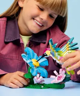 Girls and boys aged eight and up who love animals can act out charming stories with the LEGO Creator 3-in-1 Wild Animals: Цвятful Hummingbird set (31384). This impressive set with animal figures gives children three different building options using the same set of bricks.