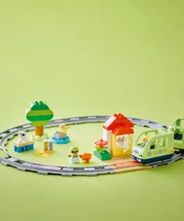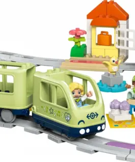 • Toddler playset packed with features Building set includes 4 figures, a toy train that plays lights and sounds, 3 destination builds and 14 track pieces for creative building and customization