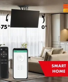 With the included remote control, you can infinitely adjust the tilt of the mount from 0 to 75° without having to stand up. In addition, the памет of the remote control allows you to store two selected positioning positions, so you can put the TV in your favorite position by pressing just one button. In addition, it is possible to control the mount using a smartphone or Таблет with the free Tuya app installed.