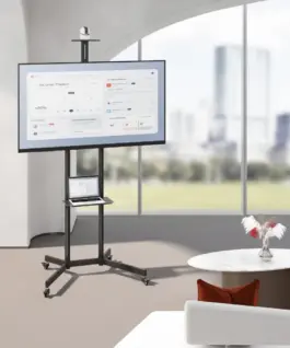 The MC-113 stand is equipped with an adjustable shelf for rtv equipment, such as players, consoles or set-top boxes, with a maximum load of up to 5 kg. In addition, the cart has a separate top-mounted camera shelf, making it ideal for video conferencing and multimedia presentations. Both the rtv shelf and the camera shelf are height-adjustable, allowing the entire structure to be ergonomically customized. The TV mount will easily attach a screen in the VESA standard: 100×100, 100×200, 200×100, 200×200, 300×200, 300×300, 400×200, 400×300, 400×400, 600×400 mm.
