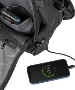 And that’s not all. Natec Camel Pro – in addition to 3 main chambers – will give you access to 3 pockets located on the front, and even a dedicated pocket for a powerbank. A special cable slot will allow you to connect your devices to an external USB port and replenish energy whenever you want. Charging on the go? With the Natec Camel Pro, it’s easier than ever.
