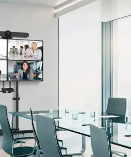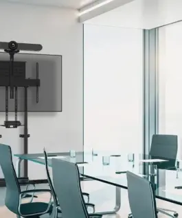 The AFL-875BL1 is an optional video bar and media kit for the FL55-875BL1 portable floor stand and WL55-875BL1 wall mount. The set allows you to mount a separate shelf for cameras and a shelf for multimedia devices to the stand. The universal shelf can be installed both above and below the screen, and its height can be adjusted to the screen. In addition, the shelf can be mounted both at the front and at the back of the handle. The set includes an adapter for Logitech Rally Bar and Rally Bar Mini (also to be placed above and below the screen).