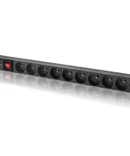Choosing the right PDU strip, it is worth paying attention to functionality, the quality of the materials from which it is made, the mounting and the facilities offered, such as the illuminated switch, which allows you to quickly locate the power source. Our product fits perfectly into 1U 19″ racks. The socket strip has 16 FRENCH sockets. The housing is made of high-quality aluminium in black, while the sockets are made of durable ABS plastic. Thanks to which the socket strip is resistant to mechanical damage and intensive exploitation. Each PDU power strip has special brackets on both sides with which they can be mounted. The sockets are arranged at an angle of 35 degrees to the vertical surface of the server cabinet, making it easier to manage cabling and increasing the space in the server cabinet.