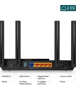 - Multi-Gigabit 2.5G: 1 2.5Gb/s WAN/LAN port + 1 1Gb/s WAN/LAN port + 3 Gigabit LAN ports + 1 USB 3.0 port provide flexible connectivity and high throughput.