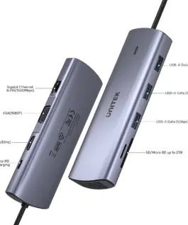 Unitek докинг станция Type-C Docking Station PD3.0 100W – HDMI, USB-C x 1, USB3.0 x 3, LAN, SD, VGA – D1113A