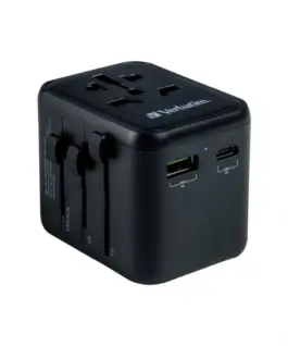 The Verbatim Universal Travel Adapter can be used in more than 180 countries take it everywhere with you and never be out of power. This world-to-world multi plug will allow you to connect to any local захранващ блок around the world and recharge your power-hungry devices, like Лаптопs and camera batteries. The USB-C and USB-A ports on the bottom can charge all your USB devices including smartphones, Bluetooth speakers, Таблетs, power banks, and Kindles.