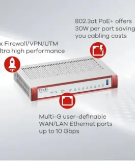The USG FLEX H series of appliances provides secure, fast protection with breakthrough high performance for virtual private networks (VPN) and unified threat management (UTM), which is a multi-layered approach to protecting the firewall, network infrastructure and connected users by leveraging high-performance Zyxel hardware and cutting-edge AI Security Cloud architecture.