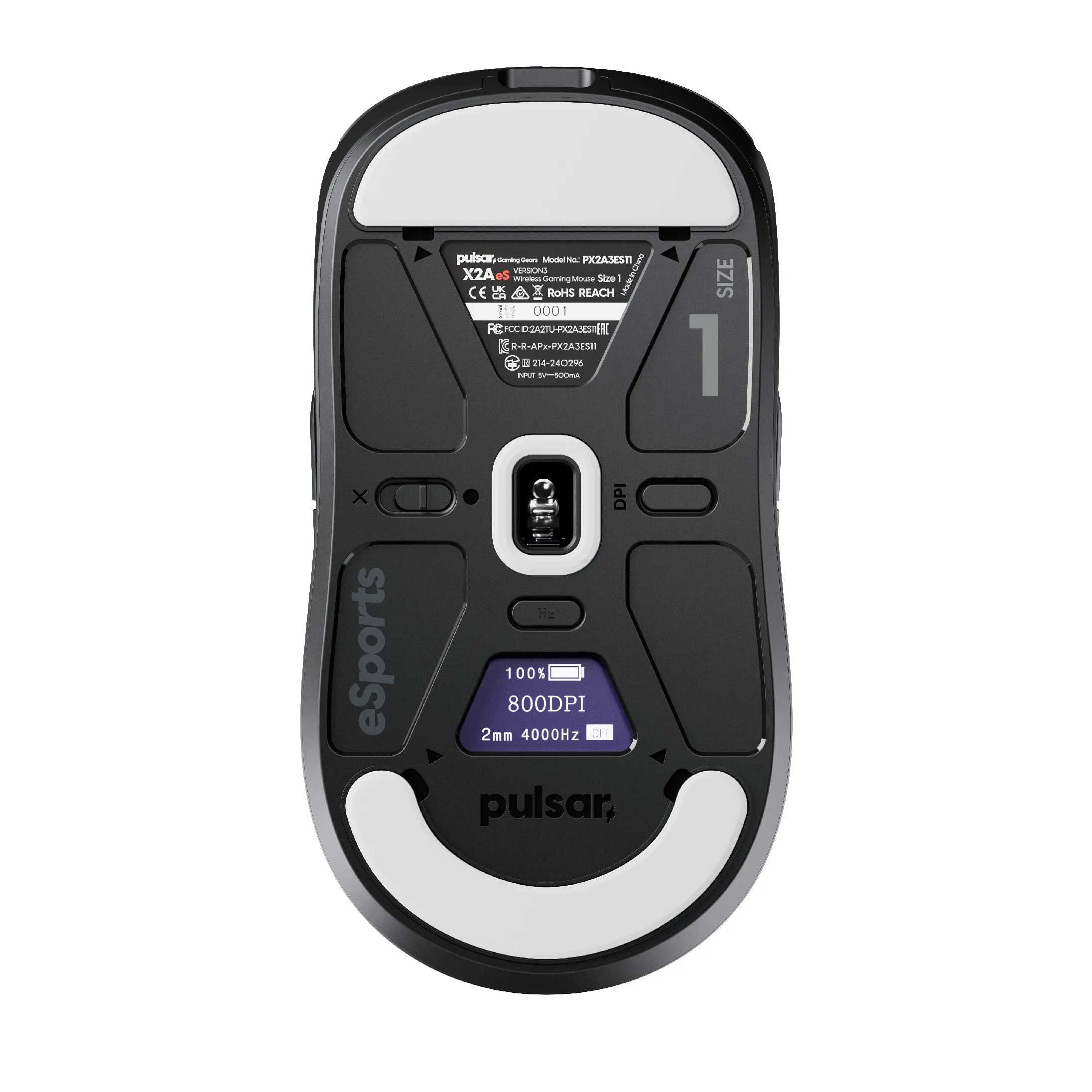 Pulsar професионална геймърска мишка Wireless Gaming Mouse X2A v3 eS Size1 Black 8K, OLED Display, Tournament Edition
