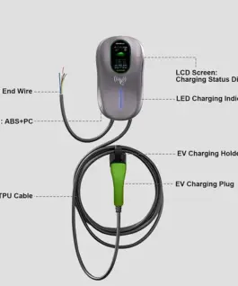 The charging gun can be conveniently mounted on the wall for easy access and space saving, especially in confined spaces. The wall mount stabilizes the cable and gun, protecting them from accidental damage and from dirt. With the wall mount, the user can organize the charging station, which enhances the aesthetics and functionality of the charging area in both home garages and commercial parking lots.
