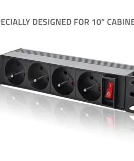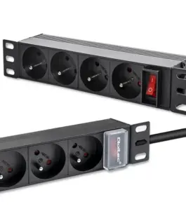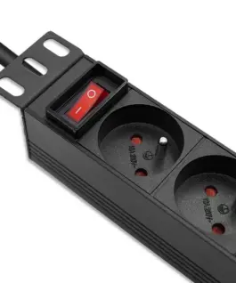 Choosing the right PDU strip, it is worth paying attention to functionality, the quality of the materials from which it is made, the mounting and the facilities offered, such as the illuminated switch, which allows you to quickly locate the power source. Our product fits perfectly into 1U 10″ racks. The socket strip has 4 FRENCH sockets. The housing is made of high-quality aluminium in black, while the sockets are made of durable ABS plastic. Thanks to which the socket strip is resistant to mechanical damage and intensive exploitation. Each PDU power strip has special brackets on both sides with which they can be mounted. The sockets are arranged at an angle of 35 degrees to the vertical surface of the server cabinet, making it easier to manage cabling and increasing the space in the server cabinet.