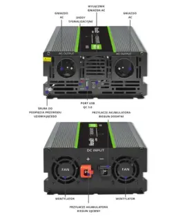 Qoltec brand inverter is a pure sine wave, produces the same current as a 230V socket, ensuring safety for all connected devices. Great for both during power outages, as well as during travel when we do not have access to an outlet. When choosing a suitable inverter, it is worth paying attention to the power value and voltage of the battery, which must be consistent with that indicated on the inverter to ensure that our equipment has the right conditions for work. Also important is the number of connected devices, for example, connecting a Лаптоп and a printer, the power of both devices should be added up. Remember that the power consumed by the connected device should not exceed 85% of the rated power of the inverter.