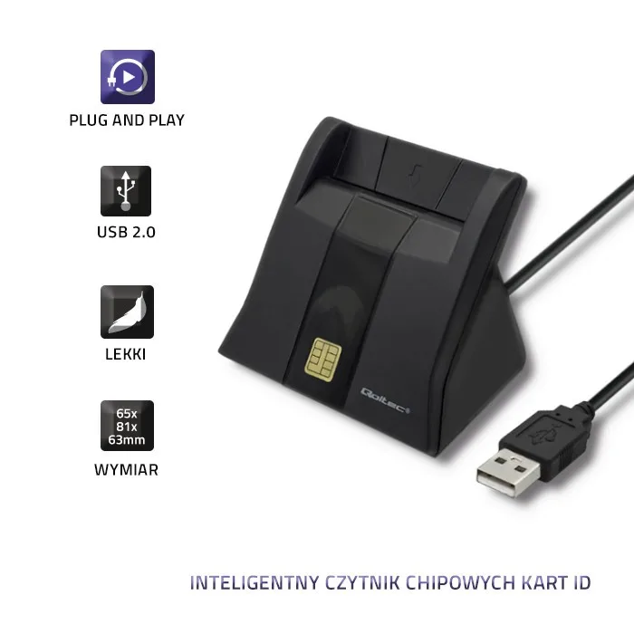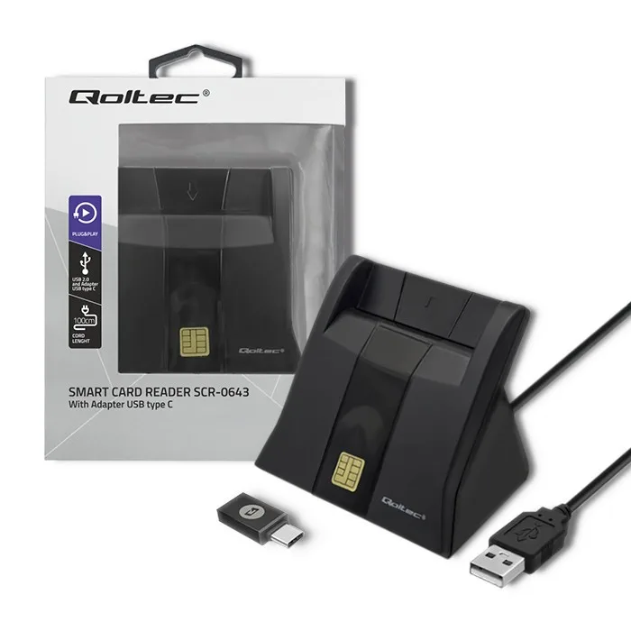 Qoltec Smart chip card scanner USB2.0 Plug&play