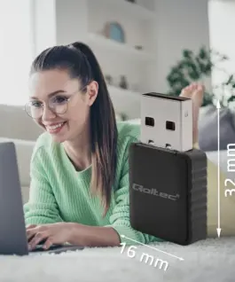 Our mini WiFi adapter with built-in internal double antenna 2 x 2dBi operating at 2.4 and 5.8 GHz is a compact solution that will provide your Компютър with high-speed Internet access. It is also ideal for travelling thanks to its compact size. The adapter works in the AC standard, which uses MIMO technology. This means that sygnał jest nadawany i odbierany przez wiele anten jednocześnie, which eliminates problems with loss of connection and ensures uninterrupted data transmission. Enjoy stable and fast internet without any interruptions.