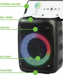 - Modes: bluetooth, FM radio, USB pen drive, microSD card, AUX, KARAOKE