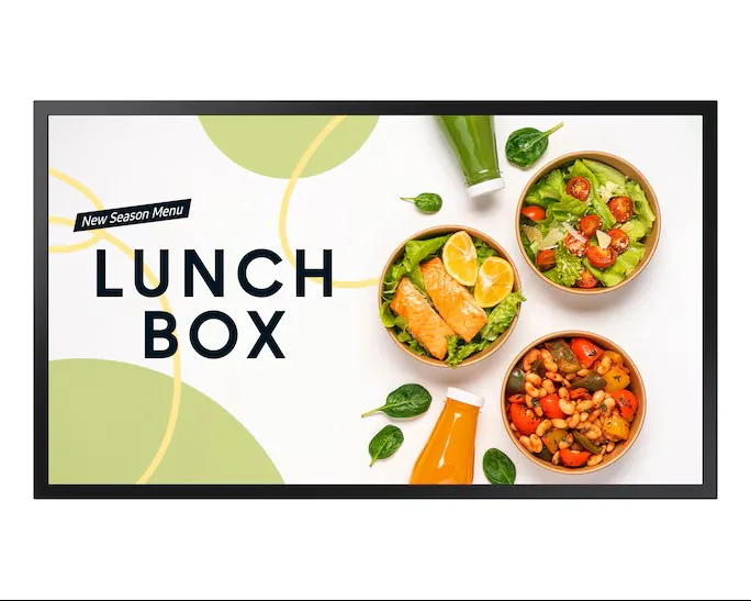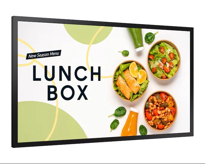 Samsung Window Signage screens enhance store window appeal and attract customer attention. High screen brightness ensures excellent image visibility even in direct sunlight. The slim design maximizes space usage while creating engaging visual experiences.
