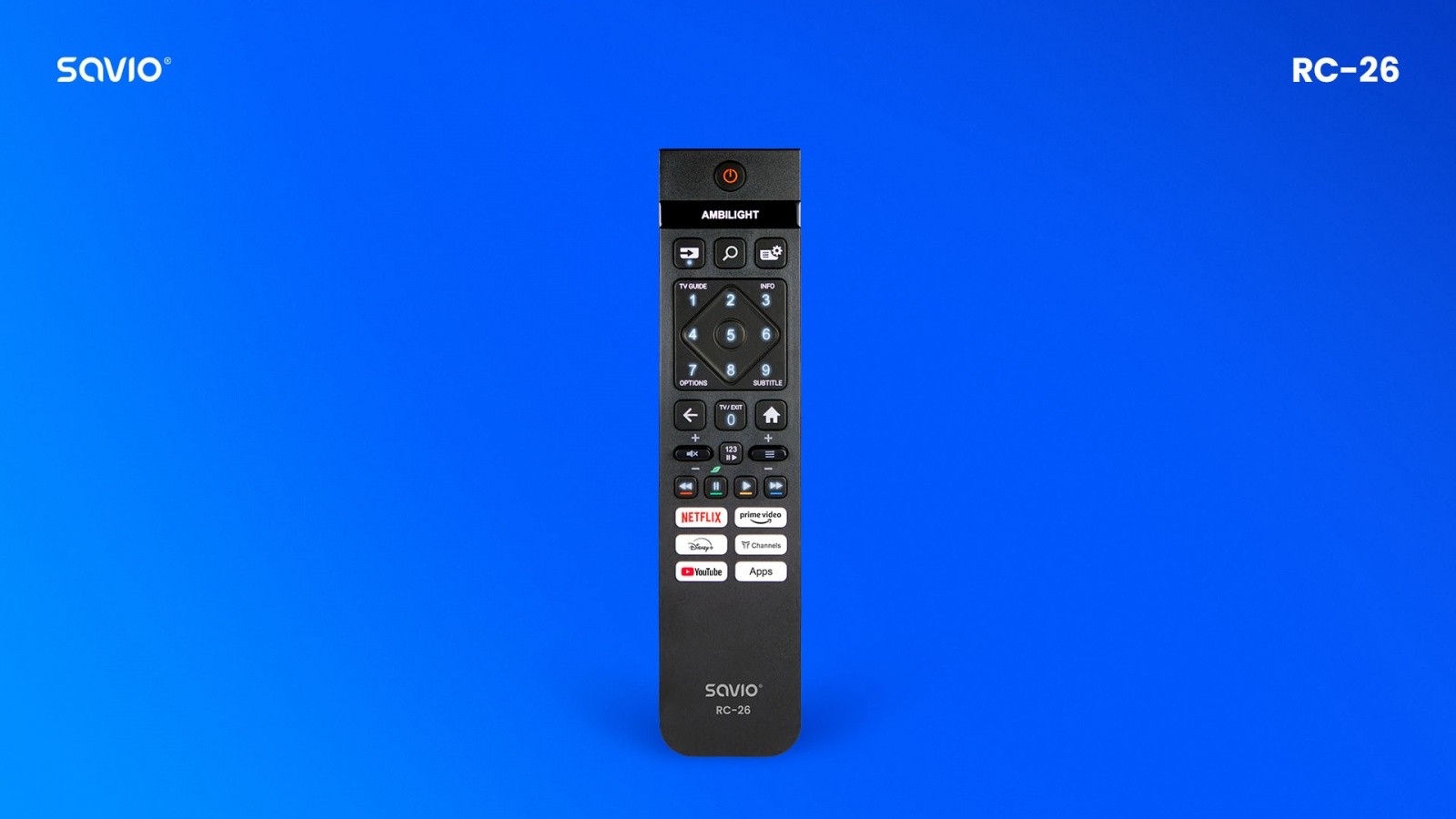 The Savio RC-26 universal remote control is a solution dedicated to Philips TVs. It works with the most popular models from LED and MiniLED to OLED, OLED+, The Xtra, The One, and many more. Thanks to full compatibility with Philips devices, you can enjoy the comfort and functionality of a remote that works exactly like the original.