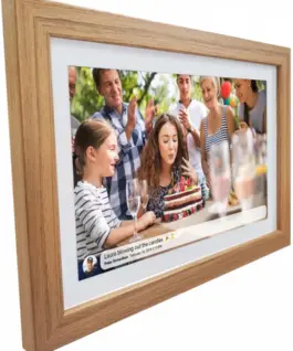The frame offers a free smartphone app for iOS and Android (Frameo). Users can easily send photos and videos directly from the app and receive content from family and friends in real time, making it the perfect solution for sharing memories.