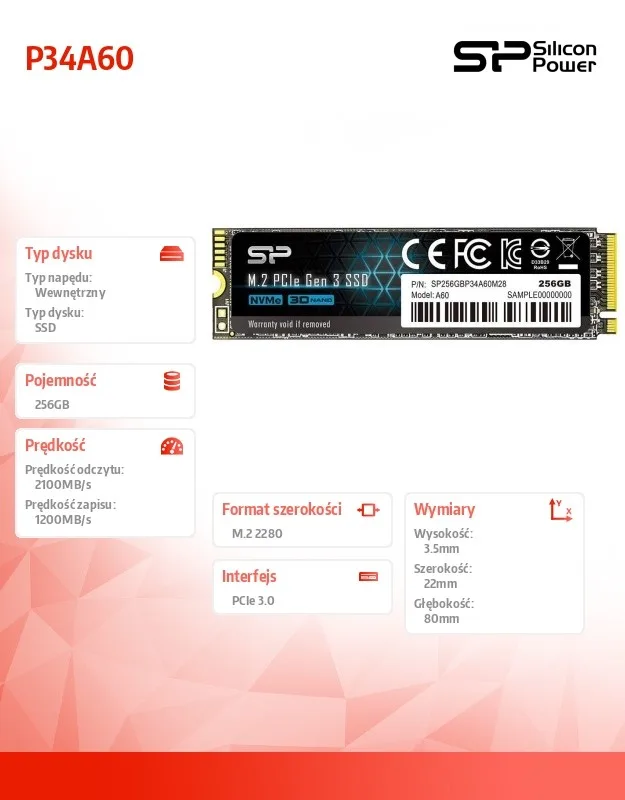 Silicon Power SSD drive A60 256GB M.2 PCIe 2100/1200 MB/s NVMe
