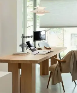 - Adjustable dual-joint arm with VESA mount supports monitors from 13″ to 32″ weighing up to 8 kg