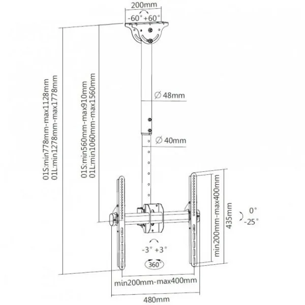 Ceiling mount LCD/LED 32-55 inches, 50kg