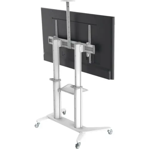 Techly ICA-TR49W trolley, P/N: 362183 Mobile stand for interactive whiteboard or LED/LCD TV 70 – 120 up to 140kg, shelf for AV components and camera, adjustable, aluminium, white