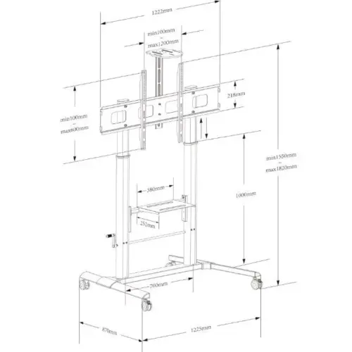 - Multifunctional TV cart with adjustable height from 1550 to 1820 mm to always get the best view