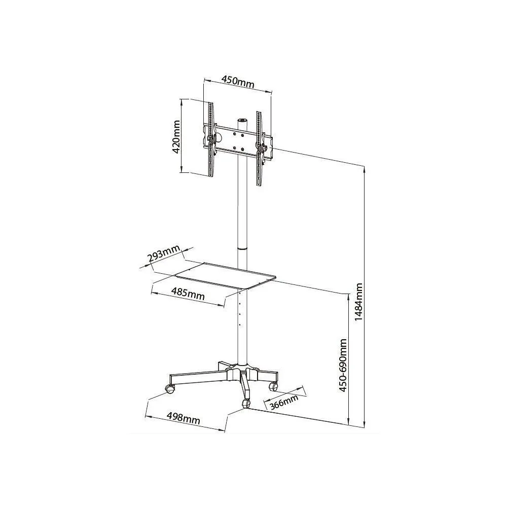 Mobile stand LCD/LED 23-55 inches adjustable with shelf, black