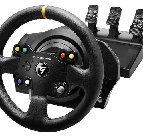 Complete racing simulator package, a new generation detachable TM Leather 28 GT steering wheel and a T3PA pedal kit for XONE and PC. Has H.E.A.R.T. Hall Effect AccuRate Technology – magnetic sensor technology based on Hall effect developed and patented by Thrustmaster. This solution has introduced a new standard of accuracy of movements, which is characterized by more than 200 times increased precision.