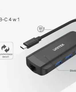 The Unitek USB hub is equipped with 3 USB-A connectors. Their maximum transfer is 5 Gbps, so you can send even very large files using them. This USB standard operates on the market as USB 3.0, 3.1 Gen1 or 3.2 Gen2, but regardless of the name, it offers equally fast data transfer and saves you from waiting for files to be copied. This makes it a good hub for connecting a pendrive to a new Лаптоп.