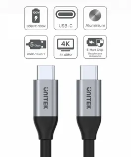 Unitek USBC кабел PD 100W 5Gbps 4K60, 2m, M/M, C14091AB