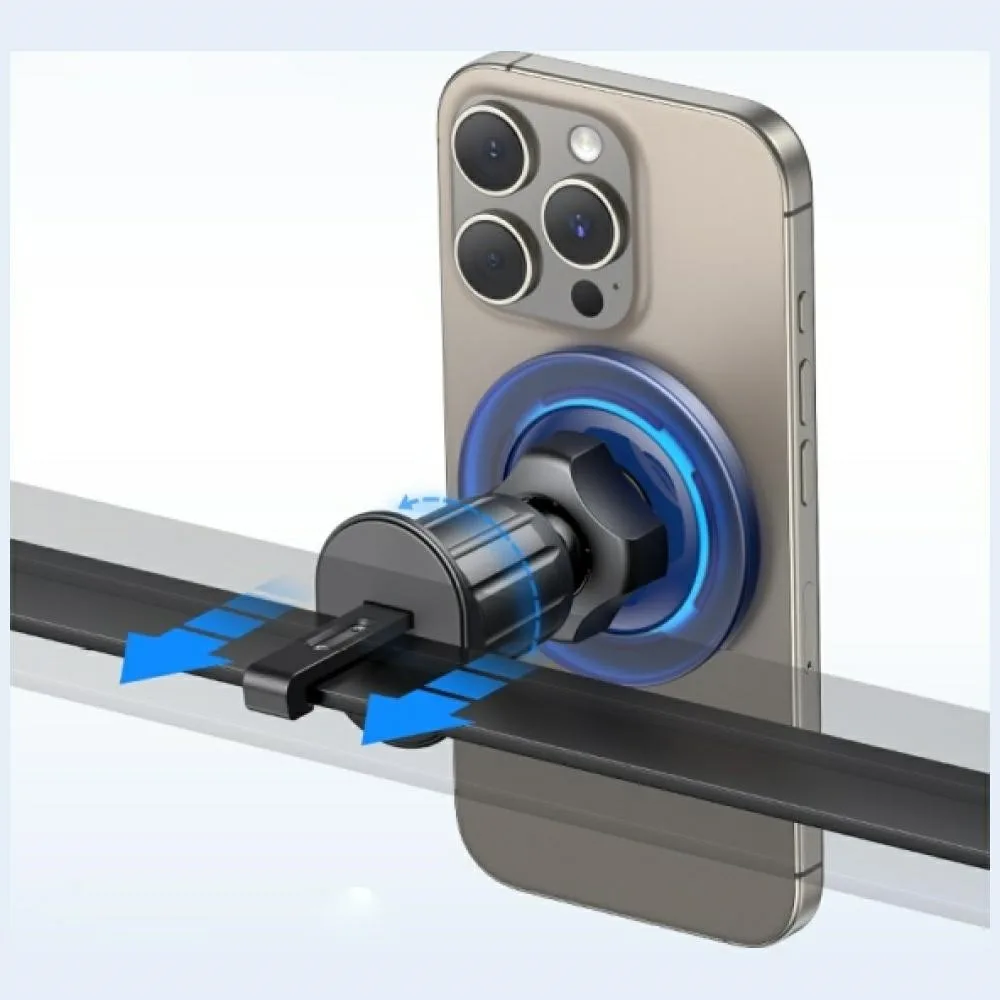 The compact design doesn’t take up much space in the cabin, and a strong magnet with an auto-centering system ensures a stable smartphone hold even on uneven roads, while also allowing for easy one-handed installation and removal. The ball-and-socket mechanism allows for full 360-degree rotation, making it easy to position the phone vertically or horizontally, ensuring an optimal viewing angle when using navigation.
