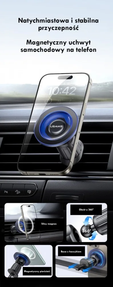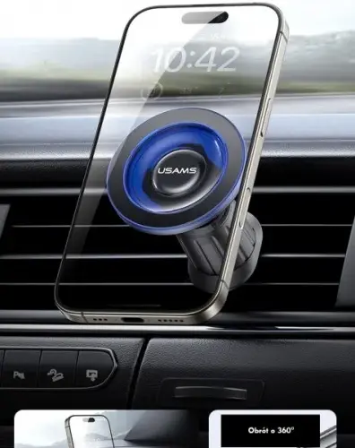 The USAMS ZJ081 is an elegant and practical magnetic car phone holder designed for mounting on an air vent. Made of high-quality acrylic and silicone, it combines durability, aesthetics, and functionality.
