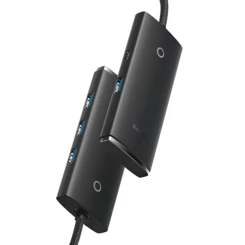 USB хъб Baseus WKQX030001 USB-A Lite Series 5в1, мултифункционален, 25см, черен